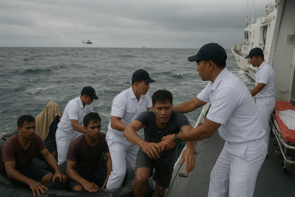 Fifteen Filipino seafarers rescued as search continues for four missing crew members from the capsized M/V Devon Bay near Scarborough Shoal.
